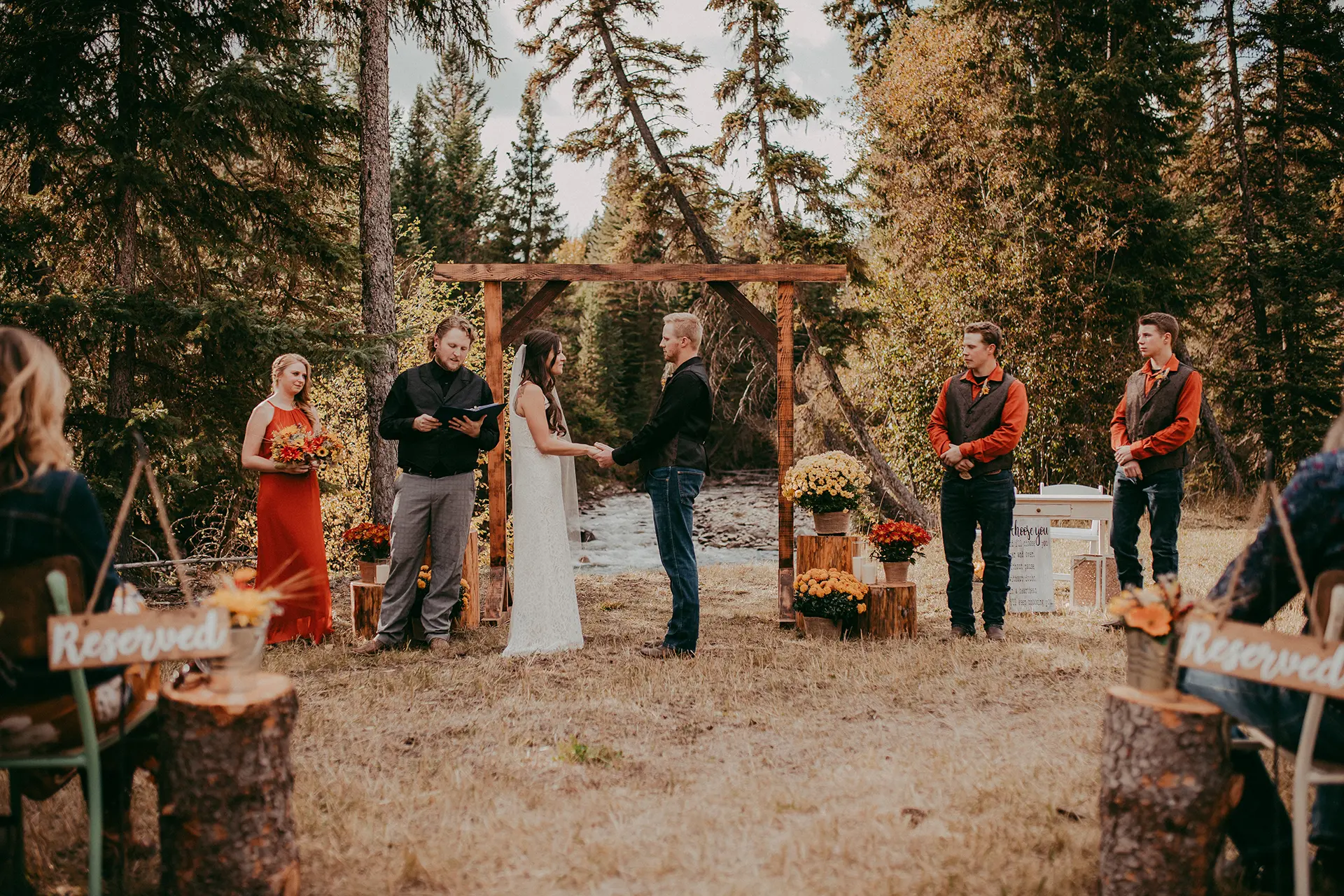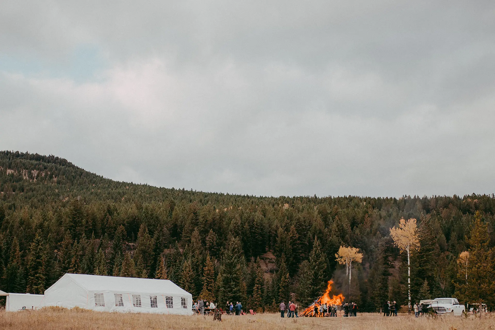 Our Horsethief venue features a secluded forest ceremony site beside a flowing creek, paired with an open meadow perfect for tented receptions, bonfires, and golden hour celebrations. Framed by towering trees and mountain peaks, it’s a serene and scenic setting for an unforgettable celebration.